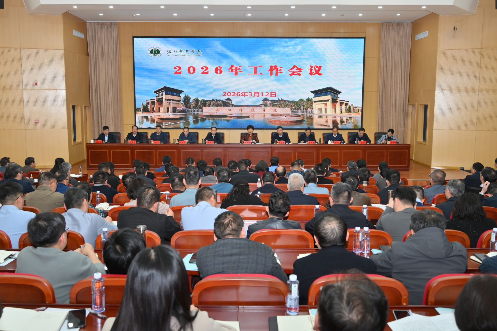 踔厉奋发开新局,担当实干谱新篇。3月12日下午,学校在成均楼B106报告厅召开2026年工作会议。校党委书记郭改英出席会议并讲话,校长赵海彦主持会议,全体校领导、中层干部参加会议。