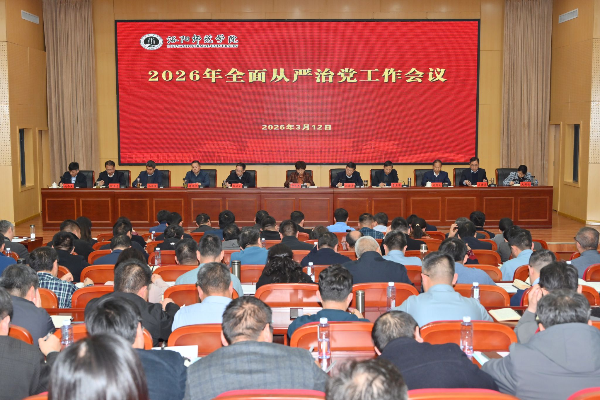 3月12日,学校在成均楼B106报告厅召开2026年全面从严治党工作会议。全体校领导、中层干部参加会议。校长赵海彦主持会议。