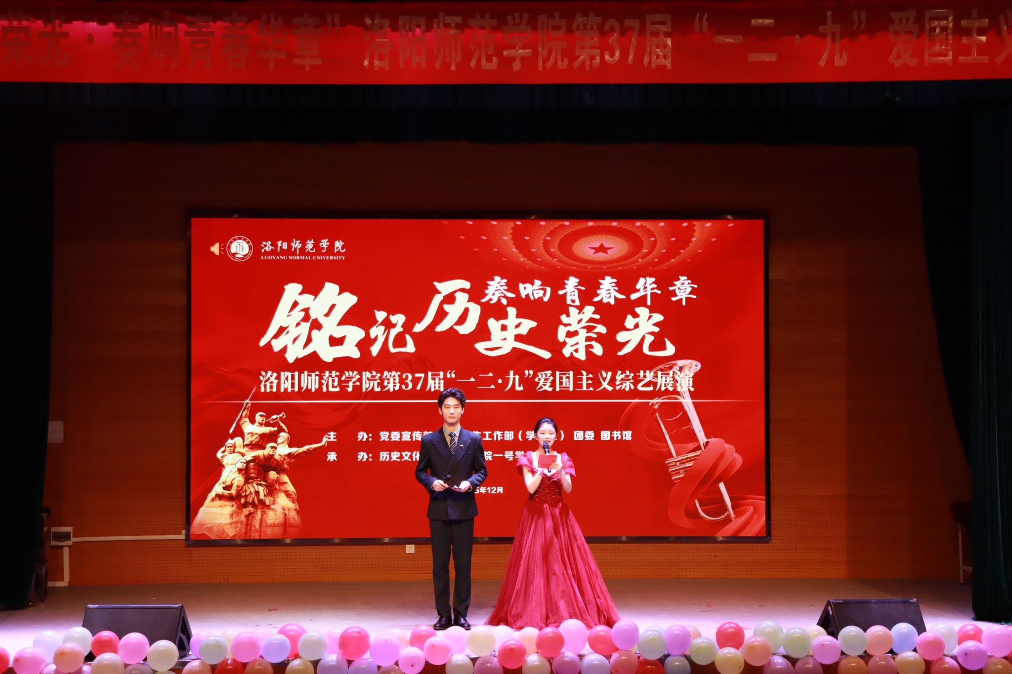 为纪念“一二·九”爱国运动90周年,激励青年学子传承红色基因、厚植家国情怀,12月9日晚,由党委宣传部、党委学生工作部(学生处)、团委、图书馆联合主办,历史文化学院、龙门书院一号学生社区承办的第37届“一二·九”爱国主义综艺展演在蓓蕾剧场举行。学校相关职能部门负责人、承办单位领导班子及200余名师生代表共同观看了演出。