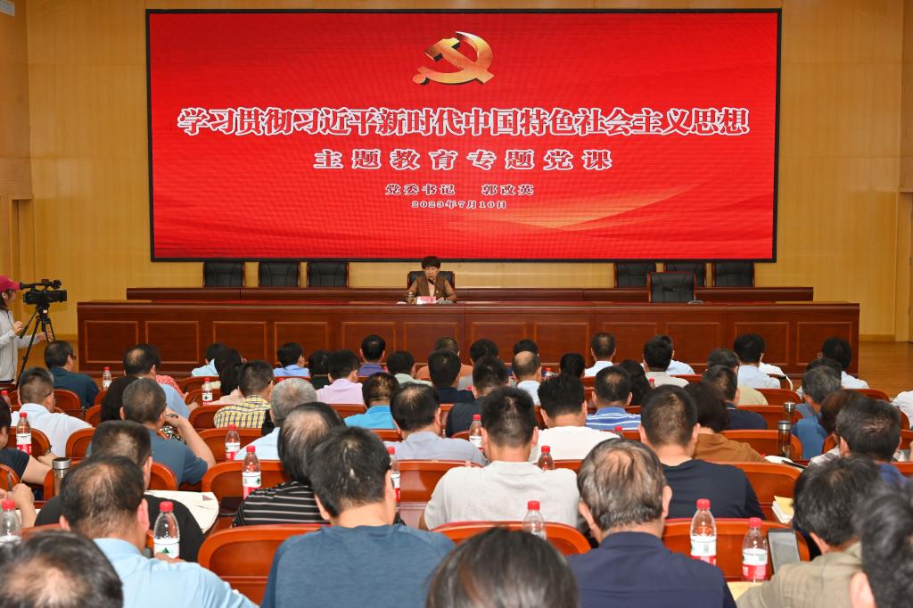 7月10日下午,校党委书记郭改英在学校学习贯彻习近平新时代中国特色社会主义思想主题教育第二期读书班上作专题党课。全体校领导、中层干部,学校7个主题教育督查小组组长聆听党课。党课由校党委副书记、副校长郭海明主持。