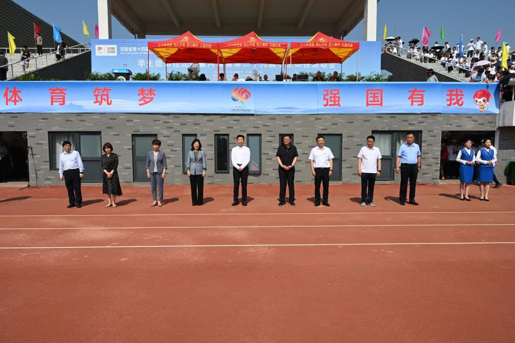 7月16日上午,河南省人民政府副省长宋争辉,副秘书长赵学东,省教育厅党组书记、厅长毛杰,省体育局党组书记、局长马宇峰,省教育厅总督学刘林亚等一行莅校,现场看望慰问参加河南省第十四届运动会学生组田径比赛暨河南省第二十九届学生田径运动会(大学生组)的学生运动员和工作人员。校领导郭改英、郭海明、李晓彦、赵海彦、张运礼等陪同检查。