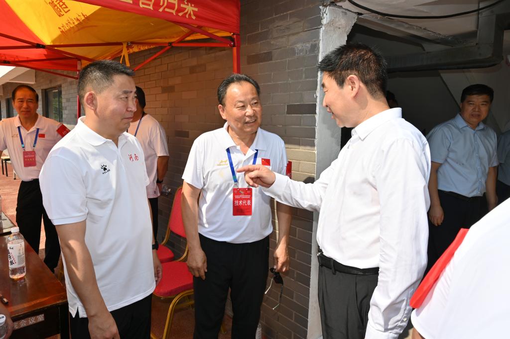 宋争辉来到赛场上,与运动员和工作人员亲切交流,对大家在赛场上展现出的坚韧不拔、奋力拼搏的体育精神表示赞赏。希望大家发扬“更高、更快、更强、更团结”的体育精神,拿出最佳参赛状态,戒骄戒躁、再接再厉,敢于挑战和超越自我,夺取更加优异的成绩,赛出友谊、赛出水平、赛出风格,充分展现我省体育竞技水平和蓬勃向上、奋勇争先的精神风貌,为建设体育强国贡献青春力量。