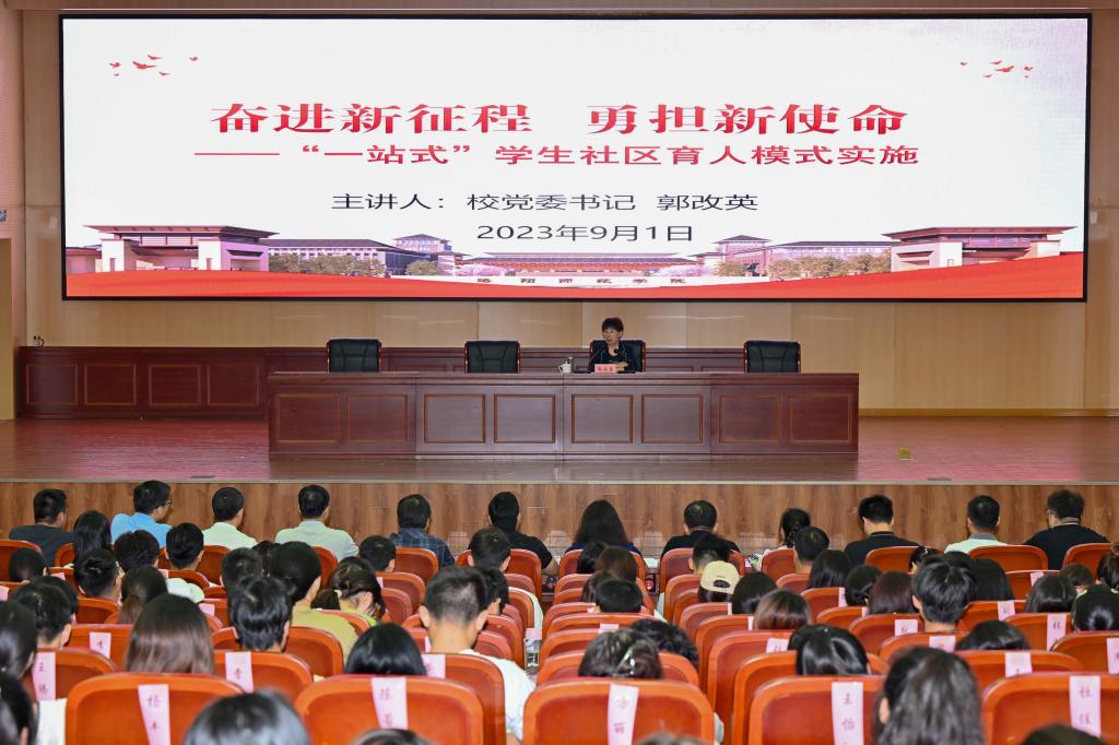 为深入贯彻落实习近平新时代中国特色社会主义思想和党的二十大精神,落实落细时代新人铸魂工程,9月1日上午,校党委书记郭改英在G1-112报告厅为青年学生骨干讲授以《奋进新征程 勇担新使命——“一站式”学生社区育人模式实施》为主题的“开学第一课”。