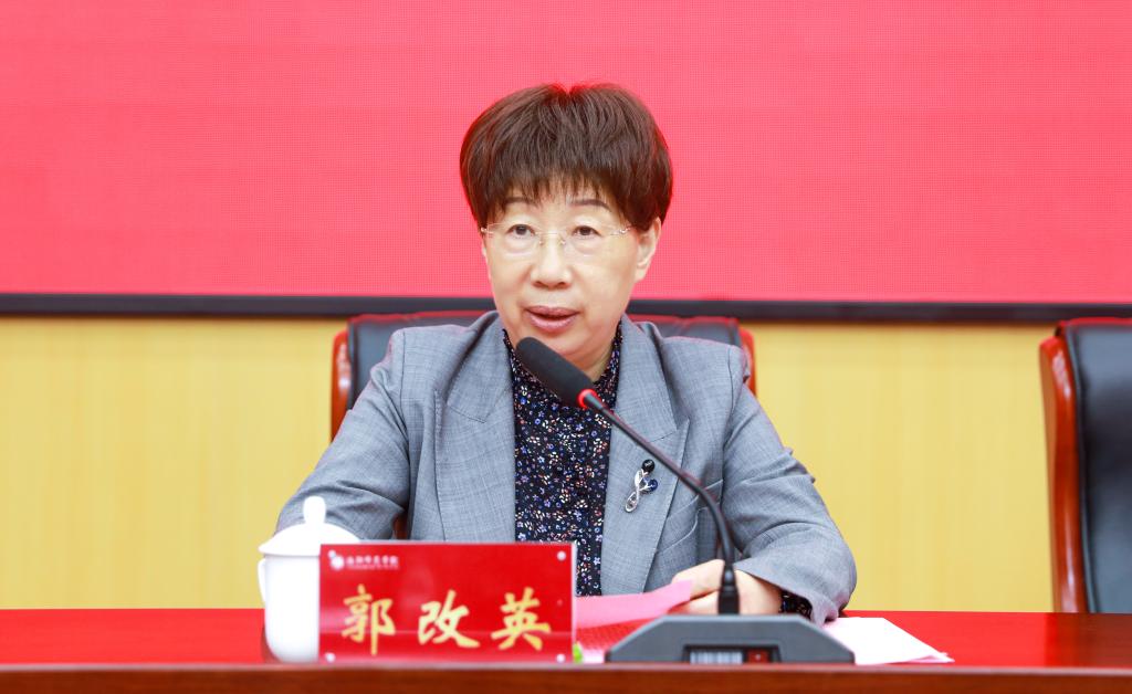 郭改英致辞,代表学校全体师生向市委市政府对学校事业发展的关心表示感谢,简要介绍了学校的基本情况,重点介绍了近年来学校宣传思想工作开展情况及取得的成效。她指出,此次部校共建新闻与传播学院,是贯彻落实习近平总书记关于新闻舆论工作重要论述的生动实践,是推动新时代党的新闻教育事业改革创新的具体行动,是加快学校新闻传播学科建设和事业高质量发展的重大举措,是提升“新文科”背景下新闻传播人才培养质量的有效途径。她表示,学校将以此为契机,调动整合校内资源,彰显办学特色,打造教育品牌,努力把新闻与传播学院建成学科融合发展、产教融合贯通、区域示范引领的一流新闻学院;主动适应媒体深度融合发展趋势,遵循新闻教育规律、新闻人才成长规律,将马克思主义新闻观融入人才培养全过程,积极探索创新人才培养模式,培养更多政治坚定、业务精湛、作风优良、党和人民放心的卓越新闻传播人才;充分发挥学科、专业和人才优势,推进新闻传播理论创新,打造高水平的新型研究智库,推出更多有思想、有温度、有品质、有情怀的作品,讲好洛阳故事、传播洛阳声音,为奋力谱写新时代中原更加出彩的洛阳篇章作出新的更大贡献。