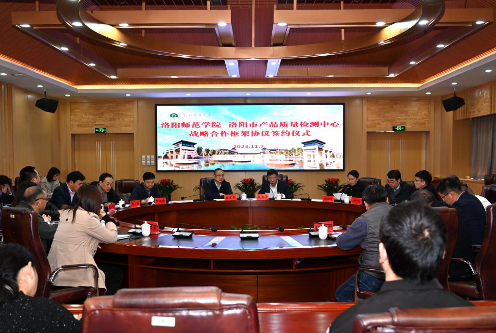 为进一步融入洛阳市经济社会发展,提高我校服务地方经济社会发展能力,11月7日,我校与洛阳市产品质量检测中心在学校成均楼B301会议室签订战略合作框架协议。洛阳市市场监督管理局党组书记、局长吉建宾,洛阳市市场监督管理局党组成员、洛阳市产品质量检测中心主任张战伟,洛阳市产品质量检测中心副主任韩冰、赵富光,副校长赵海彦出席签约仪式,教务处、科研管理处、实验室建设与管理中心、生命科学学院、化学化工学院、食品与药品学院等相关单位负责人、教师代表参加。签约仪式由生命科学学院院长史明艳主持。