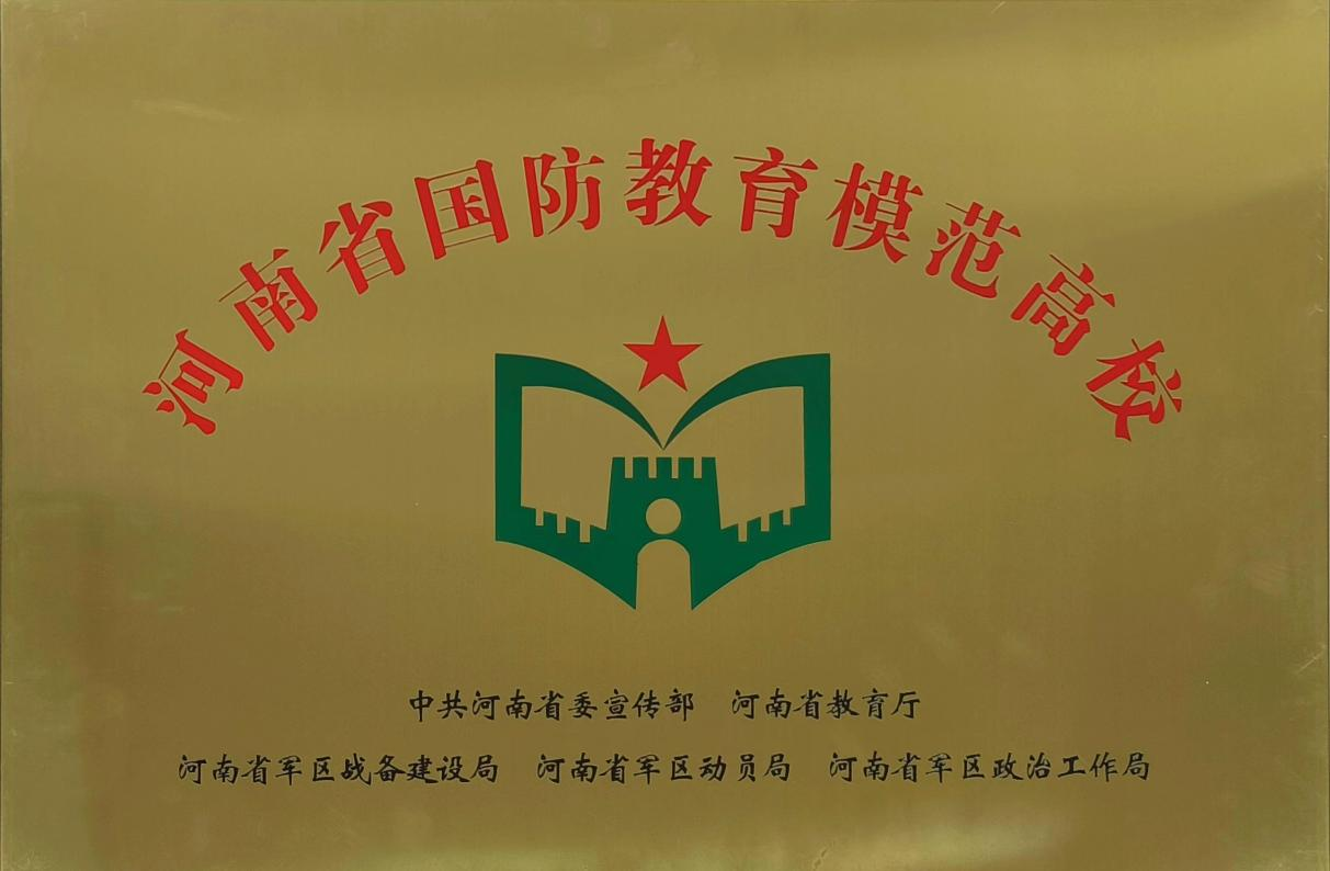 长期以来,学校认真贯彻落实习近平总书记关于深化全民国防教育的重要指示精神和中央军委、省市征兵工作相关文件精神要求,高度重视大学生国防教育工作,把国防教育作为学校教育的重要组成部分,紧紧围绕立德树人根本任务,积极开展系列国防教育活动,全面落实国防教育政策法规,在新生军训、大学生入伍、国防宣传、形势政策教育等方面取得显著成绩。三年来,在县(区)初评、省辖市测评和省评定委员会审核等环节的严格评测中,我校连续三年被评为“河南省国防教育模范高校创建考评达标单位”,并获得首批“河南省国防教育模范高校”荣誉称号。