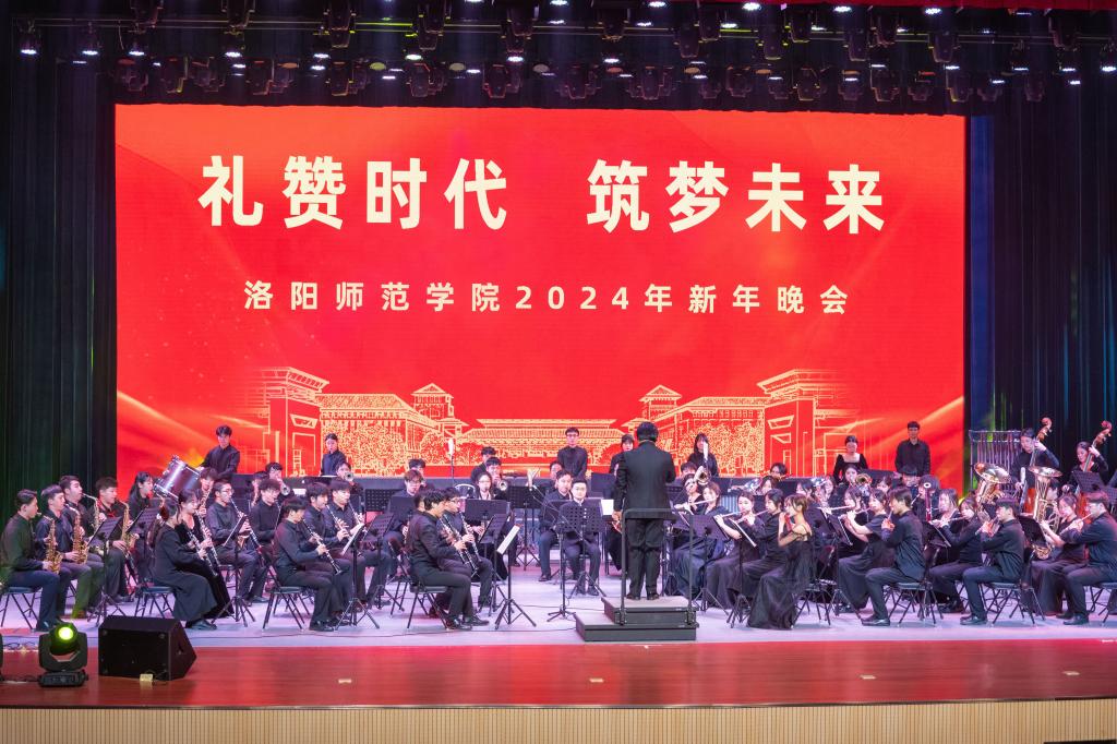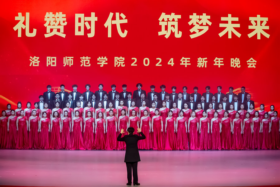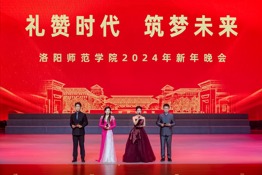 奋发图强,礼赞新时代;斗志昂扬,筑梦向未来。12月28日晚,我校在音乐学院大剧院隆重举行“礼赞时代·筑梦未来”2024年新年晚会。洛阳市城乡一体化示范区管委会主任朱蕾、洛阳市公安局国保支队支队长李红、洛阳市公安局伊滨经开分局政委刘国恒,我校党委书记郭改英,党委副书记、工会主席李晓彦,副校长潘留占、赵海彦、张运礼、赵邦屯、曹玉涛、冯恒强,纪委书记练忠杰,原党委副书记张辛卯,原党委副书记、纪委书记余法旺,原副校长项清焕,洛阳市、伊滨区、洛龙区、偃师区有关委局、职业学校、中小学负责同志,友好单位、校友代表以及学校全体中层干部、优秀教师和优秀学生代表共同观看了晚会。