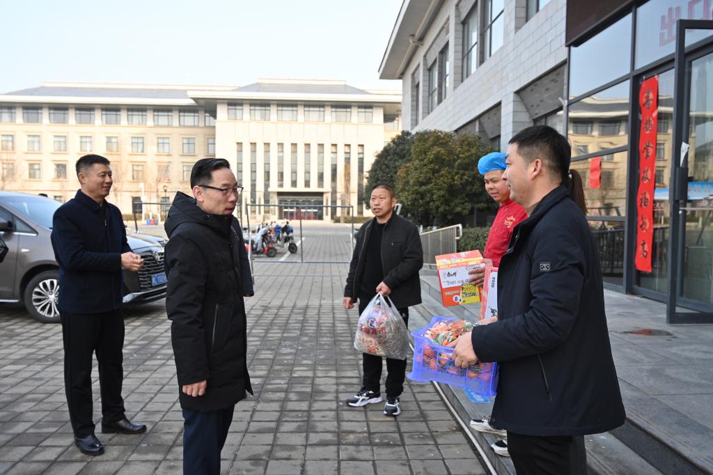 2月9日,在新春佳节来临之际,副校长张运礼带领党政办公室、党委宣传部、保卫处、后勤处等部门负责同志,深入学校值班值勤各个点位看望慰问春节期间坚守岗位的一线干部职工,向他们送上节日的问候和诚挚的祝福。