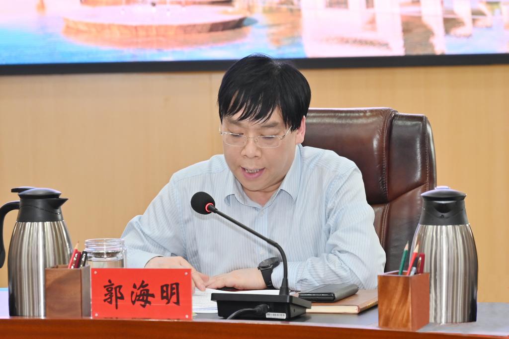 校党委副书记、校长郭海明传达了学校党纪学习教育工作方案,明确了“坚持原原本本学,推动《条例》入脑入心”“坚持以案促学,让党员干部受警醒、明底线、知敬畏”“坚持以训助学,深化《条例》理解运用”等三个方面的工作内容,同时对党纪学习教育工作组织领导、专班组成人员及职责分工作出具体安排。