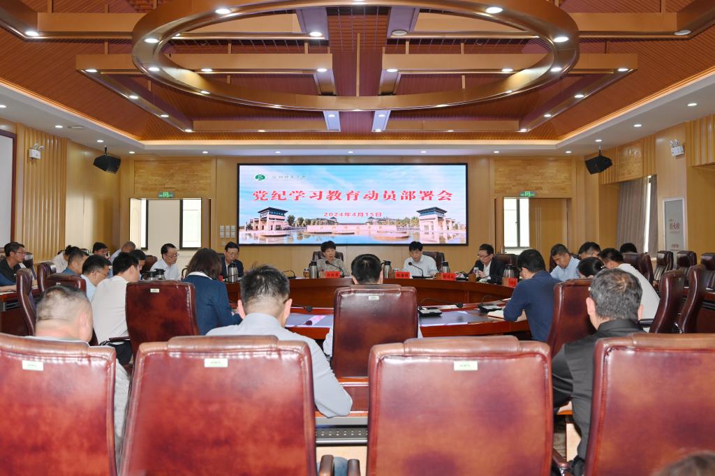 郭改英作动员讲话。她指出,开展党纪学习教育是以习近平同志为核心的党中央作出的重大决策,要切实把思想和行动统一到党中央、省委决策部署上来,深刻认识开展党纪学习教育是推动学习贯彻党的创新理论走深走实的重要举措、是推动全面从严治党向纵深发展的必然要求、是推动学校高质量发展的有力保障。要把握目标任务,注重融会贯通,通过抓住重点“研学”、抓好培训“助学”、抓严以案“促学”、抓实日常“融学”,推动党纪学习教育扎实开展。