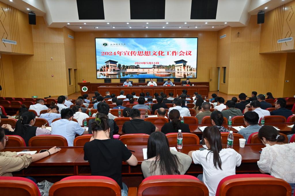 就做好学校2024年宣传思想文化工作,他强调,一是准确研判形势,清醒认识做好宣传思想文化工作的机遇挑战。深刻把握推进教育强国建设给宣传思想文化工作提出的新要求,深刻把握世界百年未有之大变局给宣传思想文化工作带来的新挑战,深刻把握新时代学生思想特点给宣传思想文化工作带来的新机遇,深刻把握学校高质量发展给宣传思想文化工作带来的新任务。二是坚持守正创新,不断强化做好宣传思想文化工作的责任担当。聚焦理论武装,在学思践悟上着力实现“新提升”;聚焦精准有效,在铸魂育人上努力开创“新格局”;聚焦主流思想舆论,在凝聚人心上大力展现“新作为”;聚焦创建目标,在文明创建上全力再上“新台阶”;聚焦以文润心,在文化育人上奋力开创“新境界”。三是明确工作要求,切实增强做好宣传思想文化工作的行动自觉,以真抓实干的朝气、守正出新的锐气、攻坚克难的勇气,积极进取、狠抓落实,共同开创学校宣传思想文化工作新局面,为建设教育强省、为全面推进中国式现代化建设河南实践贡献洛师力量,以更加优异的成绩向新中国成立75周年献礼!