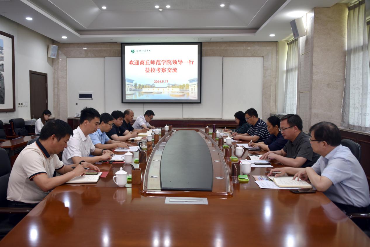 5月17日上午,商丘师范学院副校长王晓征一行5人来我校考察交流,座谈会在成均楼B302会议室举行。副校长曹玉涛出席,党委教师工作部(人事处)、党委学生工作部(学生处)、教务处、招生就业处、财务处相关负责同志参加会议。