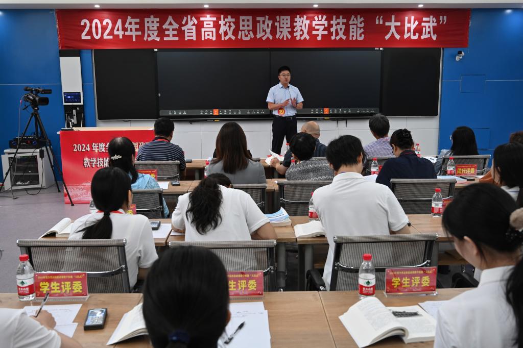此次“大比武”活动分为本科组和高职高专组,共分为六门课程,采取以线下+线上的形式,通过“豫教思语”公众号进行全程直播。来自郑州大学、河南大学等46所本科和32所高职高专组的149名参赛教师齐聚我校,共同探讨思政课教学的精髓,分享教学经验和心得。