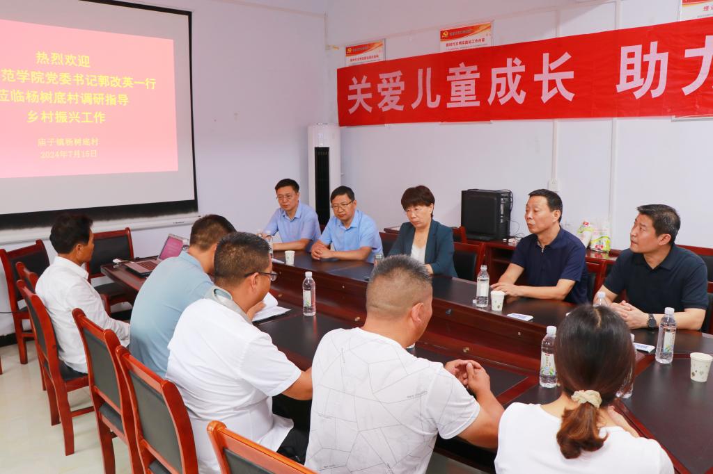 郭改英指出,要以习近平新时代中国特色社会主义思想为指导,认真贯彻落实党的二十大关于全面推进乡村振兴的战略部署,立足当地实际,认真完成巩固拓展脱贫攻坚成果同乡村振兴有效衔接期内各项工作任务;要不断提升基础设施建设,全面摸清杨树底村基础设施短板,紧紧围绕饮水安全、道路修缮、公共照明等群众最关心、最期盼解决的现实问题,找准突破口和结合点,把基础设施建设作为改善农村生产生活条件的重要抓手,持续筑牢乡村振兴之基;要大力发展特色产业,坚持项目带动、激活资源,立足康养民宿、种植资源优势和基础,持续推动望君山和蕙兰产业园招商引资和项目建设,围绕农文旅融合完善设施配套、丰富产品业态,积极挖掘新的经济增长点,全力推进乡村特色产业发展再上新台阶;要进一步发挥学校人才、学科和科技资源优势,为地方提供技术、信息、平台等方面支持,与地方共同谋划、共同发力,创新帮扶方式、提高帮扶水平,为全面推进乡村振兴贡献洛师力量。
