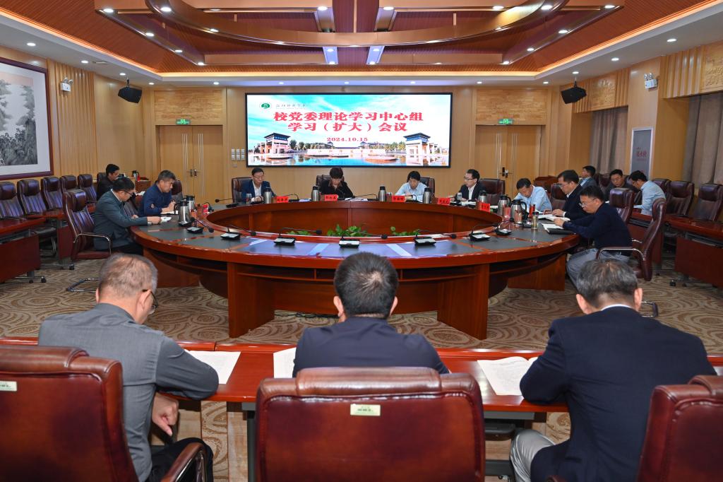 10月15日上午,校党委理论学习中心组在成均楼B301会议室举行集体学习会,深入学习习近平同志在全国教育大会上的讲话、《习近平总书记在全国民族团结进步表彰大会上的重要讲话》、楼阳生同志在全省教育大会上的讲话等内容。会议由校党委书记郭改英主持,校党委理论学习中心组全体成员,有关职能部门负责人参加学习。