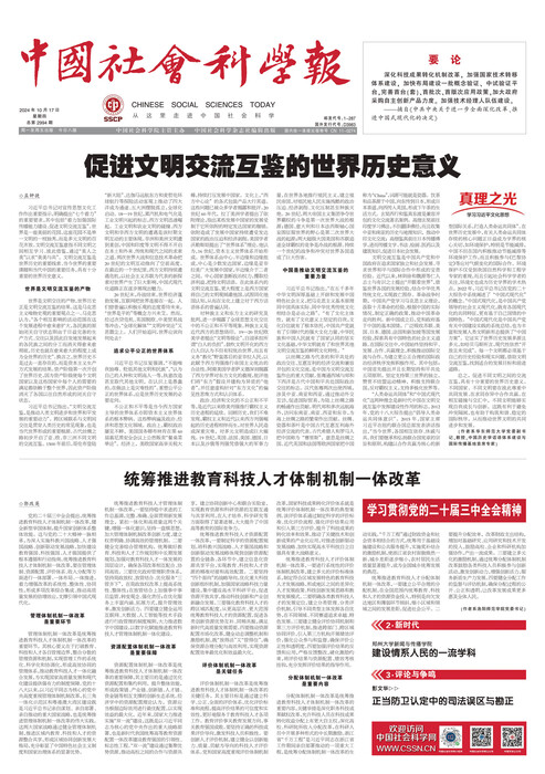 10月17日,《中国社会科学报》刊发我校党委书记郭改英教授理论文章《统筹推进教育科技人才体制机制一体改革》。文章从管理体制机制一体改革是重要环节、资源配置体制机制一体改革是重要保障、评价体制机制一体改革是关键任务、分配体制机制一体改革是重要内容等方面,对统筹推进教育科技人才体制机制一体改革作了深入的理论阐释。全文如下: