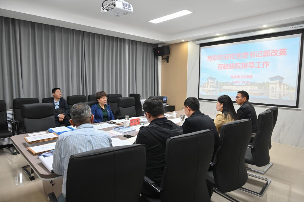 10月17日上午,校党委书记郭改英到马克思主义学院调研指导本科教育教学审核评估迎评工作。