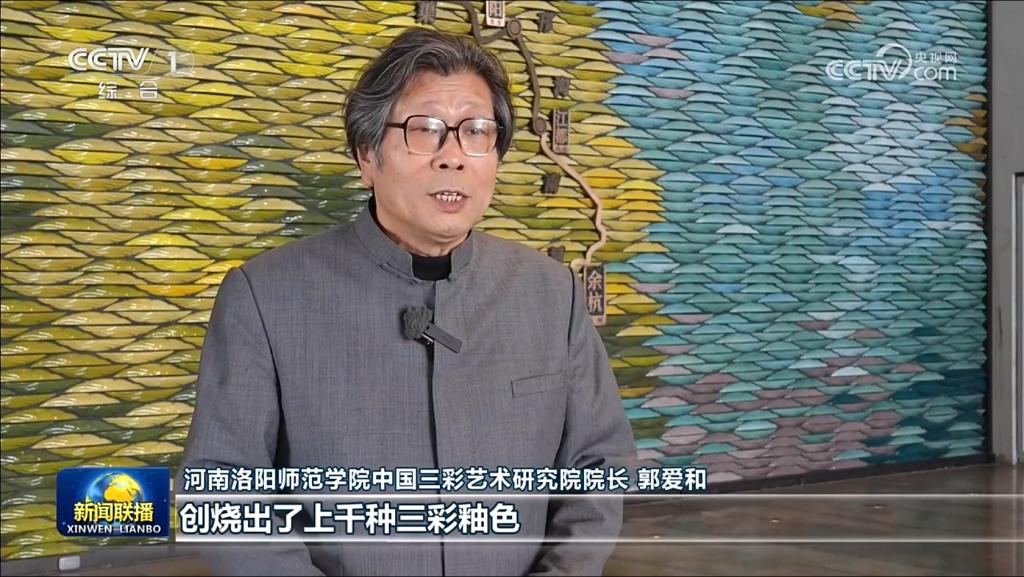 节目中,我校美术与艺术设计学院郭爱和教授介绍了利用新型材料和新工艺推动三彩艺术创新的做法。2008年,唐三彩烧制技艺入选国家级非遗。其中,由唐三彩衍生出来的三彩釉画在三彩釉色的基础上提升色彩的丰富性,融合国画等艺术形式,让唐三彩艺术拥有更广泛的创作空间。