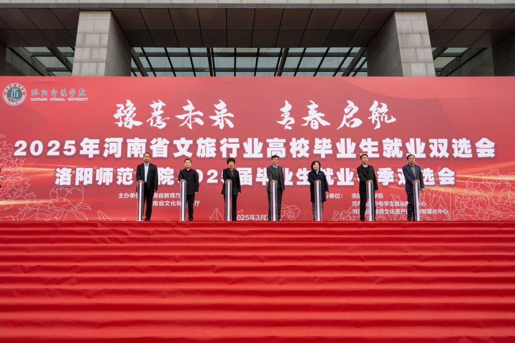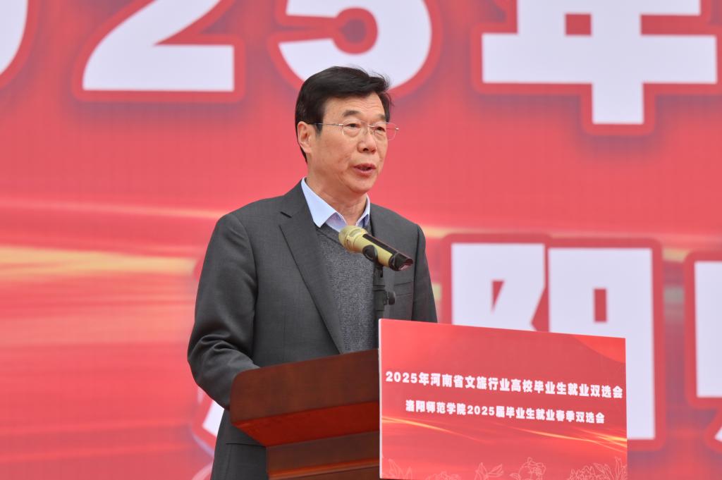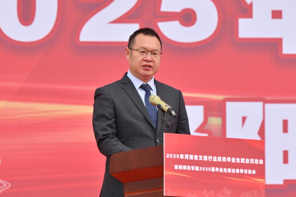河南省教育厅二级巡视员胡万欣,河南省文化和旅游厅二级巡视员刘春晓,校党委书记郭改英,河南省教育厅学生处四级调研员钱鹏俊,洛阳市文化广电和旅游局党组书记、局长李振刊,副校长马录芳、程金龙出席活动,洛阳市各县区文化广电和旅游局局长,驻洛高校相关负责同志,学校就业创业工作领导小组成员单位负责人,各二级学院党政负责人、就业创业办公室主任,毕业班辅导员、班主任和全体毕业生参加活动。启动仪式由党委副书记张运礼主持。