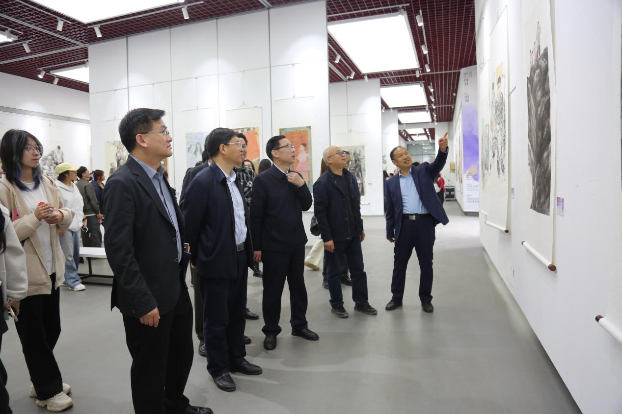 陈文利高度肯定我校美术与艺术设计学院近年来在人才培养、艺术创作上取得的成果。他表示,此次巡回展汇聚全省老中青艺术家的人物画精品力作,既是河南人物画学术突破的集中呈现,也是高校艺术教育的重要实践案例。希望通过此次展览,使广大师生和观众对河南不同地区的风土人情有更深刻的理解和感悟,持续推动河南中国人物画创新发展,为繁荣河南省美术事业贡献力量。