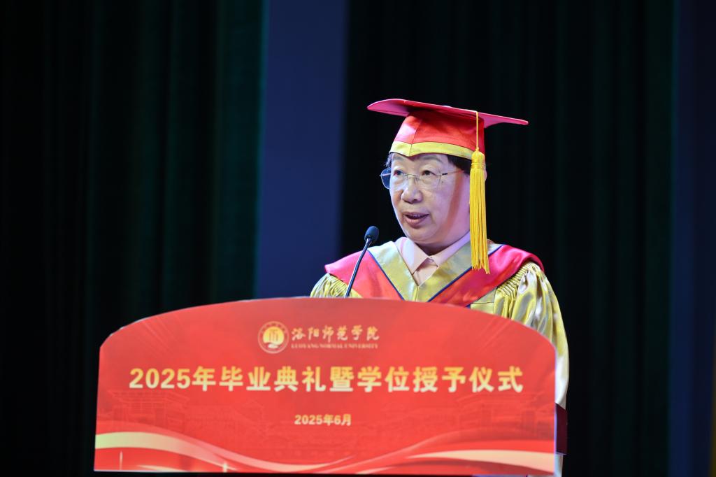 郭改英首先对2025届毕业生顺利完成学业表示祝贺。她谆谆寄语毕业生,在涵育“大我情怀”中担当强国使命,树立雄心壮志,心怀“大我”、肩负“大任”,到新时代新天地中去施展抱负、建功立业,把青春荣光镌刻在祖国大地上、镌刻在中华民族伟大复兴的历史进程中。在持续“向新而行”中拥抱时代变革,始终保持“空杯心态”,紧跟时代步伐,不断加强数字素养,善用新思想、新技术、新思维把握时代机遇,努力成为新时代智能技术的驾驭者和知识经济的创造者。在体验“生命诗性”中热爱烟火俗常,学会发现、珍惜、感恩生命中的一切美好,在烟火俗常中感知清风明月、守护公序良俗、传递真善美,保持一份清高、守住一份气节、活出一种风骨。