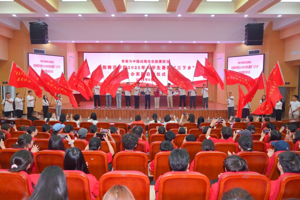 青春因实践而精彩,人生因奋斗而升华。6月27日上午,我校在逸夫楼G1-112报告厅举行2025年大学生暑期“三下乡”社会实践启动仪式。校党委副书记张运礼出席并讲话,党委宣传部、党委学工部(学生处)、党委研究生工作部(研究生处)、教务处、校团委等部门负责人,各书院(学院)党委副书记、团委负责人以及实践队学生代表近300人参加了启动仪式。