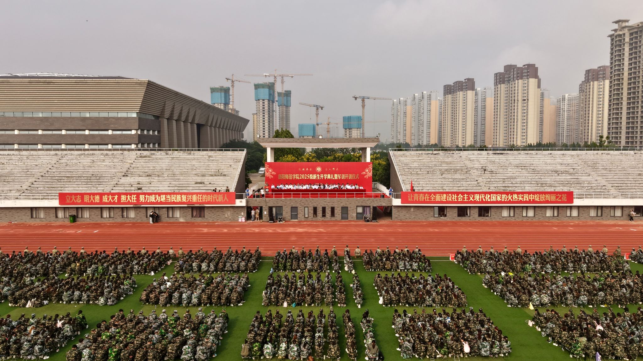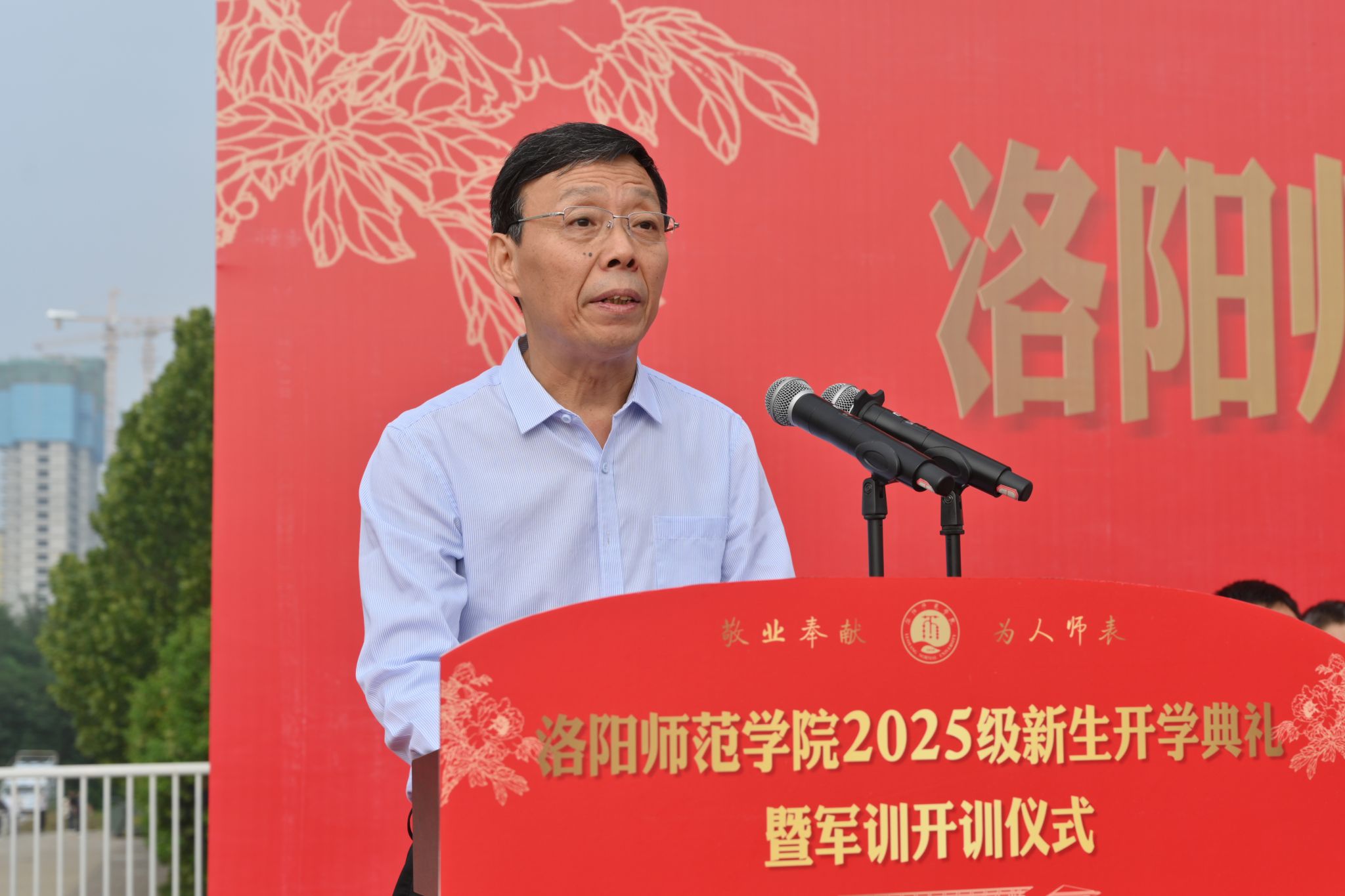 最后,赵海彦对军训提出要求,希望新生在训练中锻造吃苦耐劳的坚毅品格、培育团结协作的集体意识、发扬勇于进取的奋斗精神,高质量完成训练任务,展现洛师学子的卓越风采!