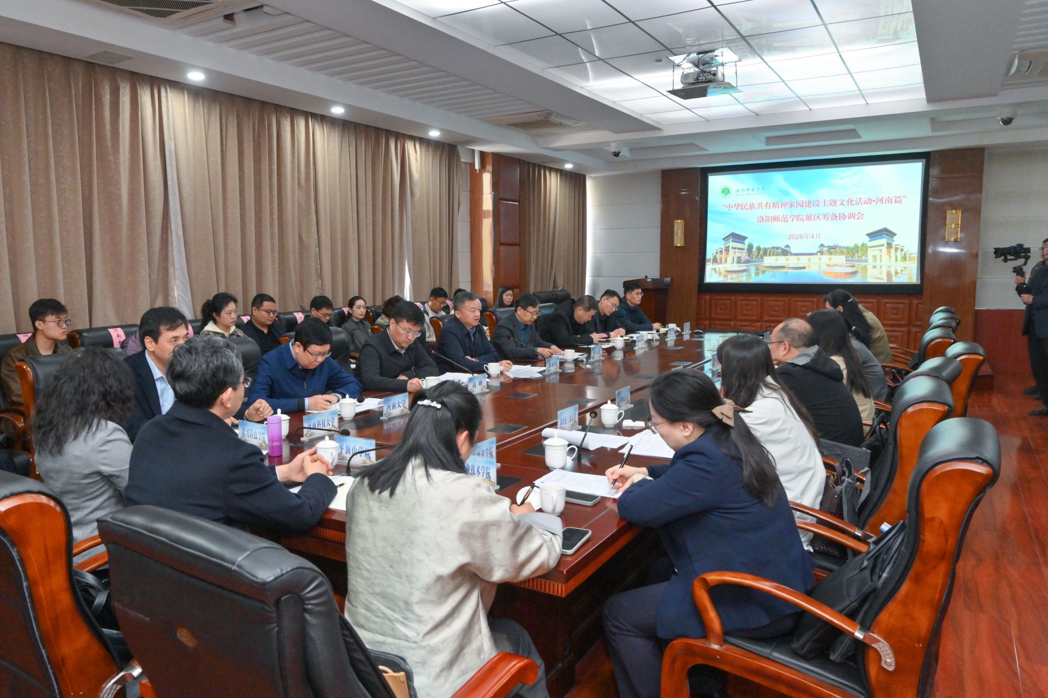 4月1日上午,“中华民族共有精神家园建设主题文化活动·河南篇”洛阳师范学院展区筹备会议在我校教育科学学院二楼会议室举行。河南省民族宗教事务委员会民族一处处长邵亚伟,河南省教育厅组织干部处三级调研员高峰,校党委副书记、工会主席、党委统战部部长曹玉涛出席,郑州大学、河南大学等15所参展高校代表参加会议。