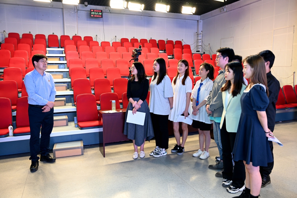 郑邦山首先来到新闻与传播学院中图期刊创刊号博物馆,了解博物馆建设、各类经典党刊创刊号收藏展示及党史学习教育开展情况,对我校以集中展出党刊创刊号这一特殊形式庆祝中国共产党成立100周年、深入推进党史学习的做法表示充分肯定。他表示,期刊创刊号博物馆作为文化载体,在深化党史学习教育中具有很高的价值,希望学校把博物馆打造成全校乃至全社会的党史学习基地,并利用丰富的馆藏资源开展好党史研究,力争取得一批标志性成果。随后,他考察了新闻与传播学院融媒体播控中心、虚拟演播室和4K实景演播室,对学校专业实验室良好的硬件条件、充分的使用率表示赞赏,他还与正在演播厅排练“声扬四海”教学实践汇报演出的师生进行互动交流,勉励同学们充分利用学校搭建的优质专业实践平台资源,强化专业能力培养,努力成长成才。