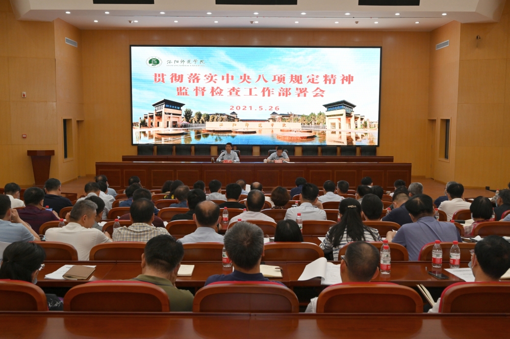 杨海强传达了省高校纪工委、省纪委监委驻省教育厅纪检监察组《2021年“落实中央八项规定精神”监督检查实施方案》精神,安排部署了学校开展“落实中央八项规定精神”监督检查工作。