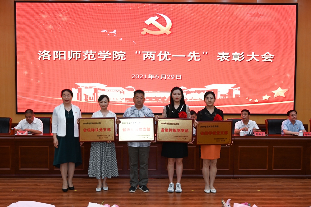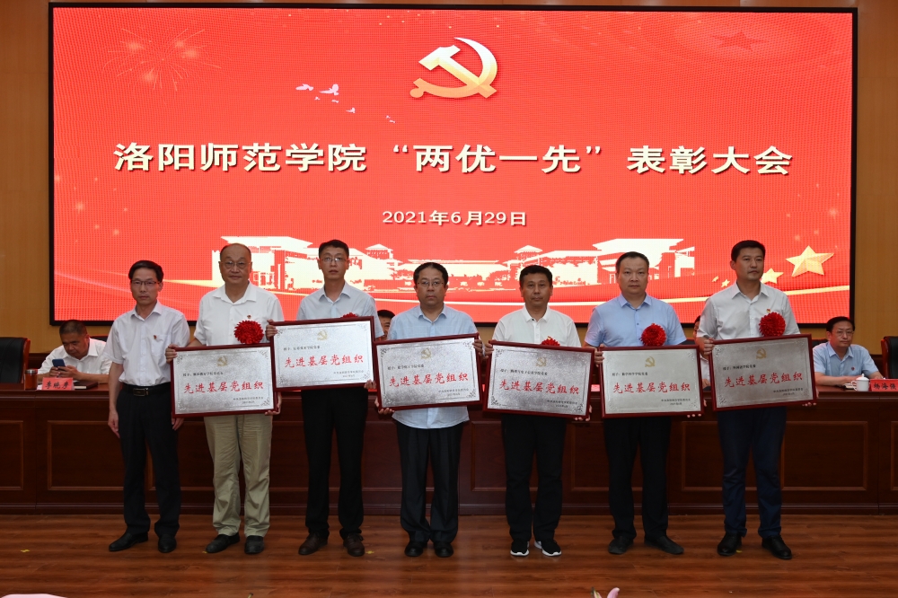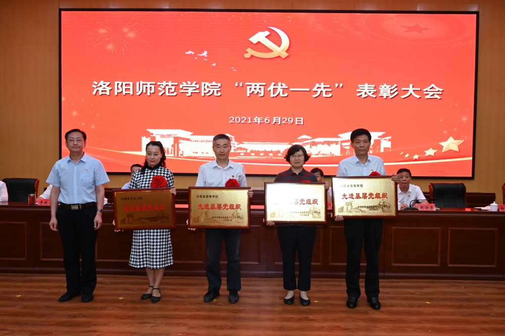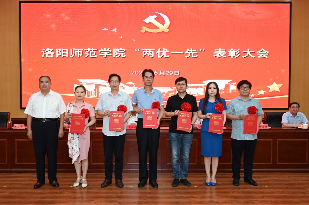 大会在庄严的国歌声中拉开序幕。会议宣读了获颁“光荣在党50年”纪念章的党员名单并为“光荣在党50年”党员代表献花、颁发纪念章;宣读了受到中共河南省委、中共河南省委高校工委表彰的“两优一先”名单、河南省高校样板支部评审结果和学校2020-2021学年“两优一先”表彰文件。