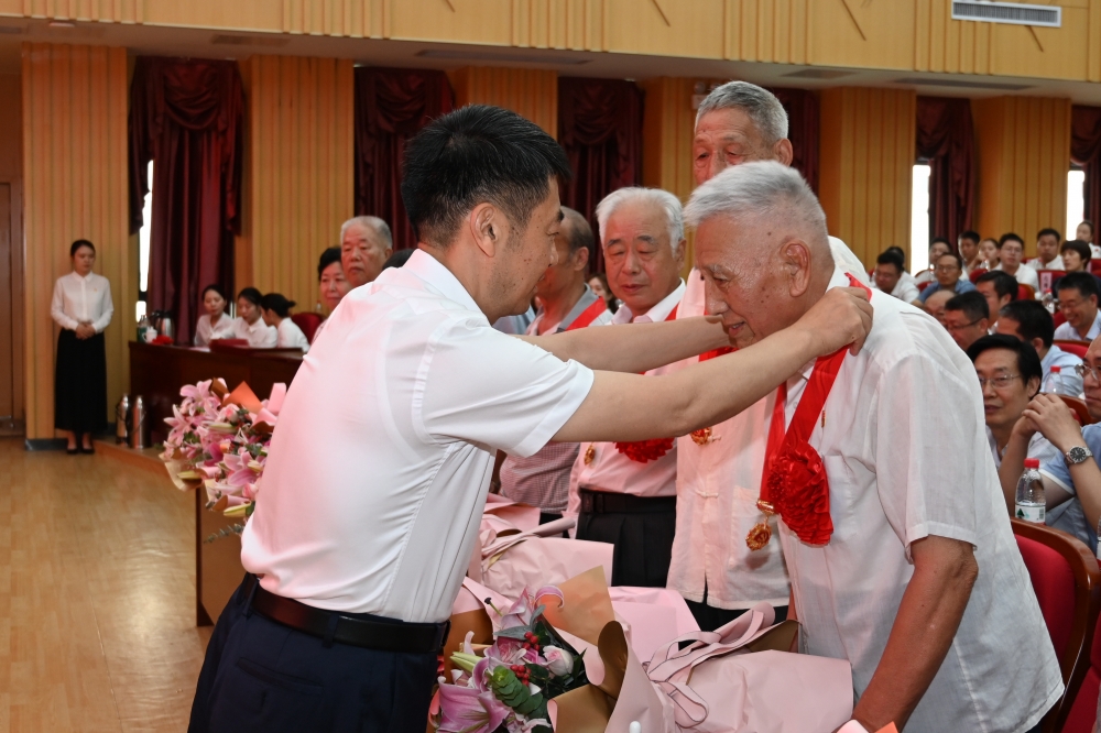 校党委书记王洪彬为“光荣在党50年”党员代表颁发纪念章