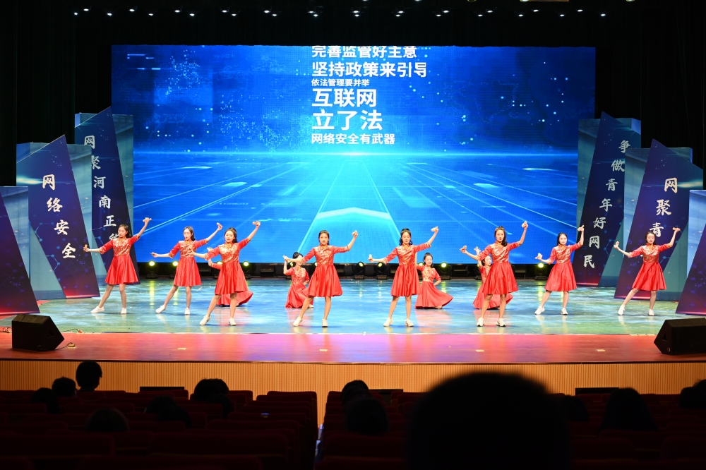 此外,活动还特别设立了网络安全知识宣传展区和主题剪纸艺术展区,我校师生通过快板书《网络安全为人民》、诗朗诵《信念永恒》、歌伴舞《新征程》、合唱《我爱你,中国》等节目,表达了新时代河南青年不忘初心跟党走、青春奋进新征程的信心决心,展现了网络强国、有你有我的青春担当。