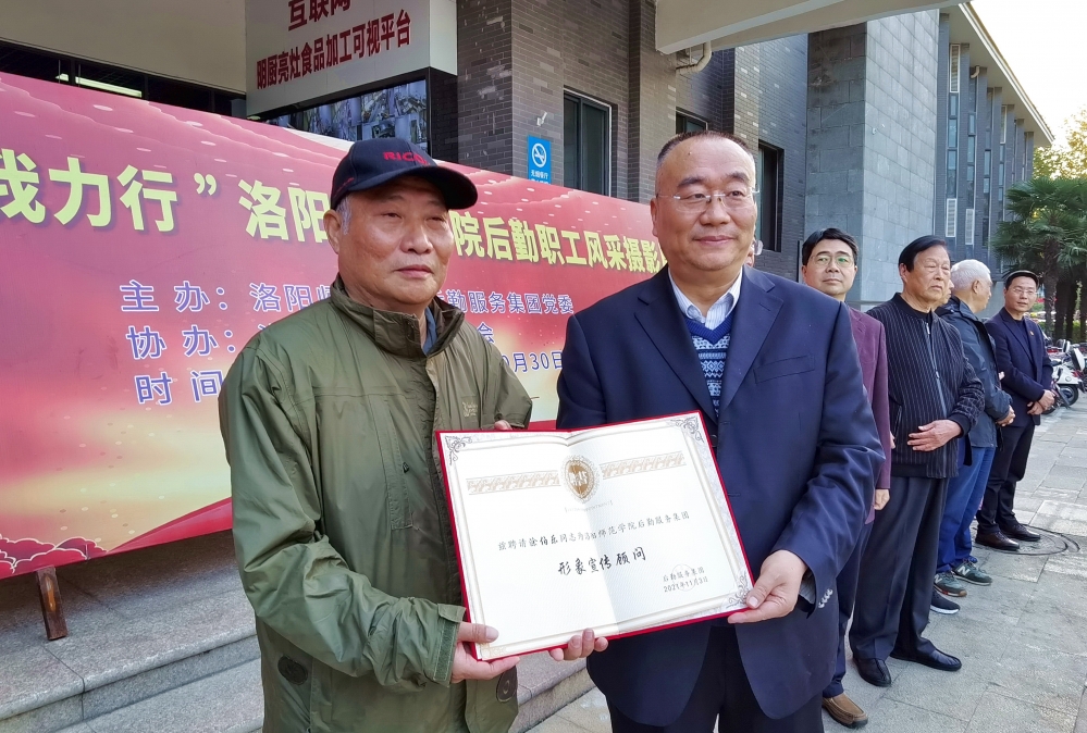 梁留科为宣传学校作出贡献的摄影家何小要、涂伯乐颁发了“形象宣传顾问”荣誉聘书,感谢摄影家们为宣传洛师作出的贡献。