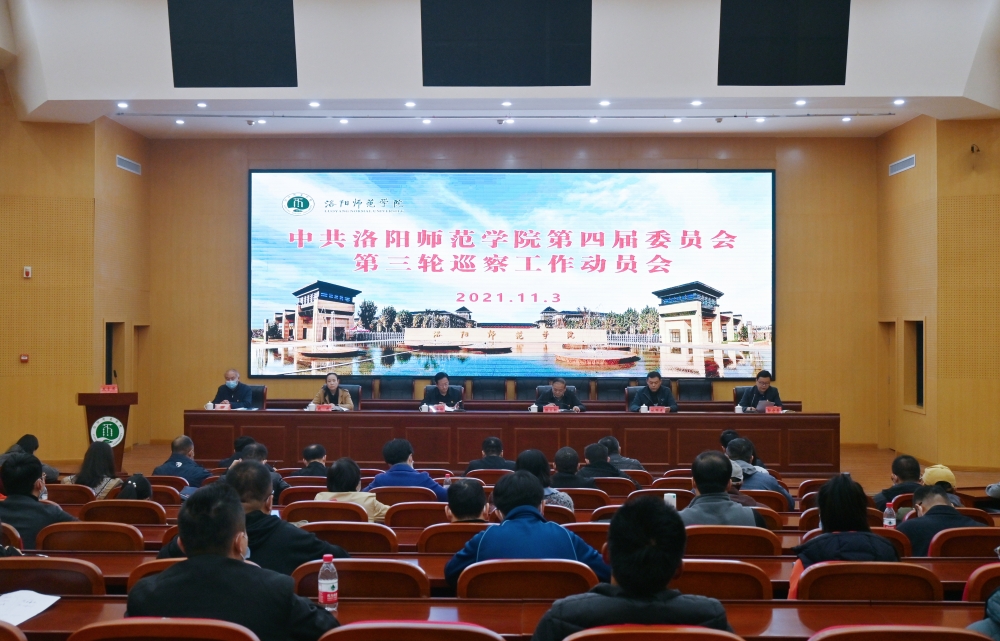 根据学校党委巡察工作统一部署,11月3日下午,中共洛阳师范学院第四届委员会第三轮巡察工作动员会在成均楼B106报告厅召开。校纪委书记、监察专员、党委巡察工作领导小组副组长杨海强,党委组织部、党委巡察工作办公室负责人,巡察组成员,被巡察单位领导班子成员、中层干部、支部书记和教工代表参加会议。