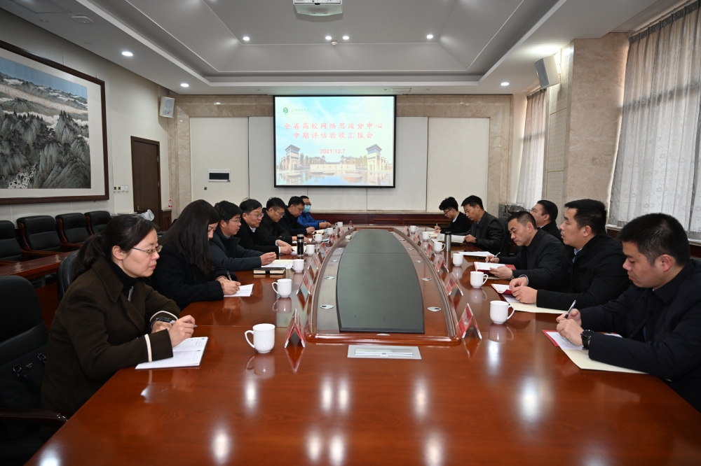 12月7日,河南工业贸易职业学院党委书记刘合行、省教育厅思想政治处副处长任龙云等一行6人,对我校获批的河南省网络思想政治工作豫西分中心建设情况进行中期评估验收。汇报会在成均楼B302会议室举行,校党委副书记宋文献主持会议并作工作汇报,党委宣传部、学生处、体育学院、音乐学院、美术与艺术设计学院、新闻与传播学院等单位相关负责人参加汇报会。