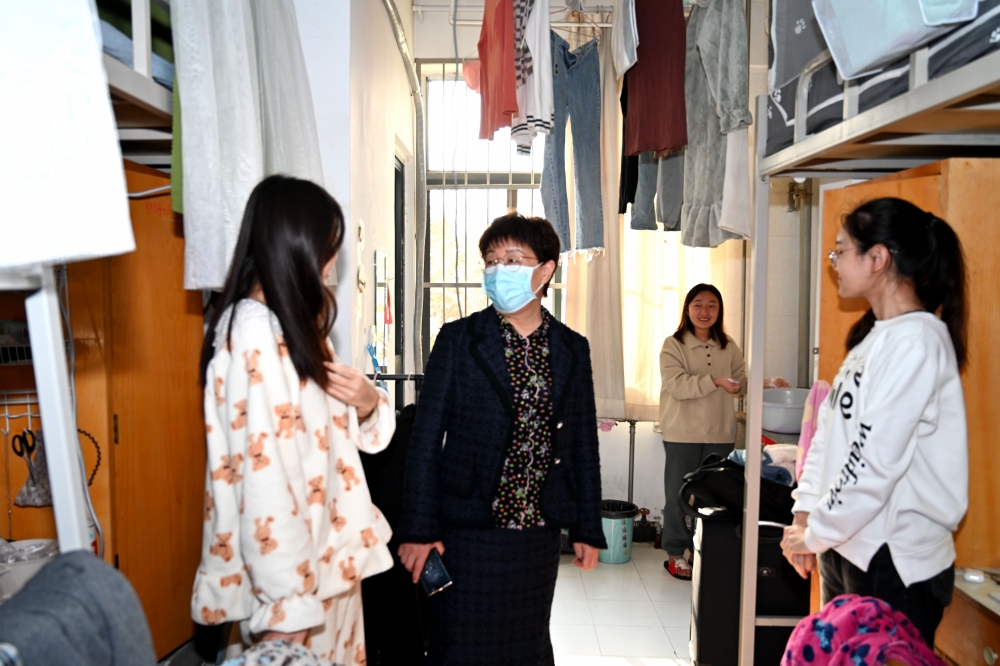 “当前疫情防控形势严峻复杂,同学们能理解学校实施闭环式管理的规定要求吗?”“对学校的教学、管理等工作有什么意见建议?”……在学生寝室,校领导与同学们面对面亲切交流,认真了解同学们在校园闭环式管理期间的思想、学习、生活情况,引导大家自觉服从学校疫情防控工作大局,理解、支持学校疫情防控工作措施要求,理性认识和科学应对疫情,提高个人防护意识和能力,坚定战胜疫情的信心;提醒同学们注意保持宿舍卫生,维持干净整洁的生活环境,加强体育锻炼和心理调节,丰富课余生活,保持积极健康心态,锻炼意志品质;祝福同学们生活愉快,学业有成。走访期间,校领导叮嘱相关部门要密切关注学生思想动态,想学生之所想、急学生之所急,帮助同学们解决思想、学习和生活上的困难,加强人文关怀,努力营造健康和谐、宽松愉悦的良好氛围。