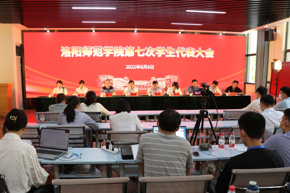 校团委书记曹嘉致开幕词;国际教育学院学生杨源林代表第六次学生代表大会常任代表会议作了题为《凝聚青春力量 勇担时代重任 团结带领广大同学为建设特色鲜明的地方高水平师范大学贡献青春力量》的工作报告。大会听取了《洛阳师范学院第七次学生代表大会代表资格审查报告》《洛阳师范学院第七次学生代表大会提案工作报告》,表决通过了《洛阳师范学院第七次学生代表大会常任代表选举办法》《洛阳师范学院学生会主席团选举办法》,通过无记名投票,选举产生了丁靖帆、牛国晓等23名同学为新一届常任代表,申慧娟、杨源林、樊一鸣为校学生会主席团成员。