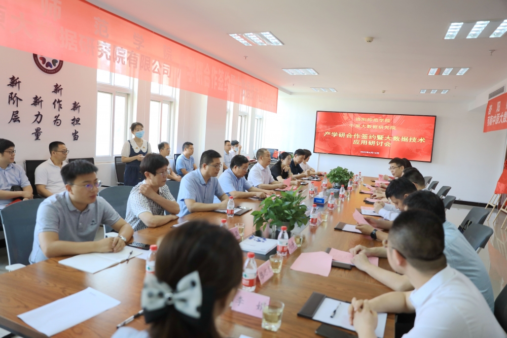宋文献致辞,重点介绍了学校在大数据科学技术成果推广应用等方面工作情况,表示学校将进一步聚焦立德树人根本任务,坚持以创新为引领,认真落实创新驱动、科教兴省、人才强省战略,围绕人工智能、大数据、区块链和元宇宙等领域,进一步深化合作,共同打造高水平产学研深度融合的“洛阳标杆”,为洛阳“建强副中心、形成增长极,奋力谱写新时代中原更加出彩的洛阳篇章”作出新的更大贡献。代伐介绍了洛阳市科技局在推动高校产学研合作和科技成果转化等方面的举措,表示市科技局将加大服务力度,联动更多高校和科研院所与企业开展精准对接,引导企业加大研发投入,提升自主创新能力,使更多企业成长为高新技术企业,壮大我市创新主体规模。中原大数据研究院首席顾问、河南中兴网信科技有限公司总经理刘仁勇介绍了中原大数据研究院与我校产学研合作情况。