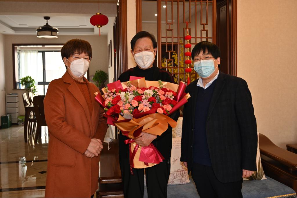 在老校长叶鹏和老书记郭恒坦的家中,校领导向他们敬献了鲜花,同他们促膝交谈,关切地询问他们的生活起居和身体情况;简要通报了学校2022年主要工作开展情况以及近期重点工作,征求他们对学校工作的意见和建议,感谢老同志们长期以来对学校建设发展作出的突出贡献,希望他们保重身体,继续贡献自己的余热,为学校的改革发展建言献策;向他们致以诚挚的问候和新年祝福,祝愿大家新年吉祥、身体健康、家庭幸福。