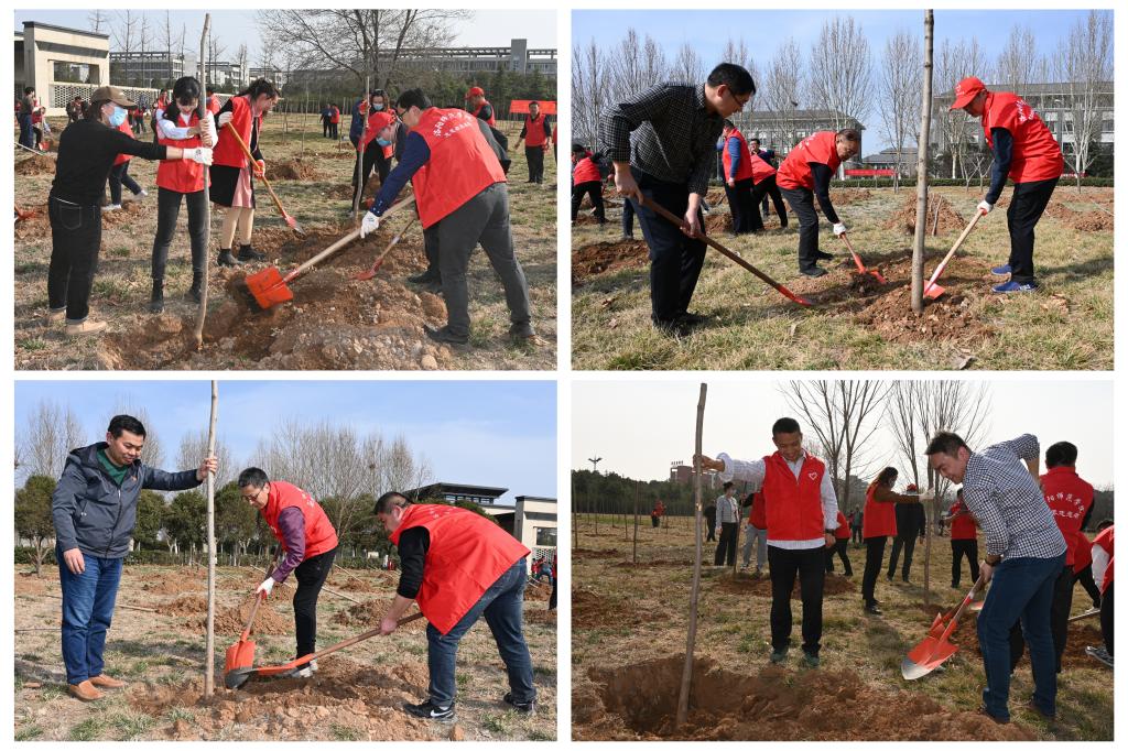 天朗气清,惠风和畅。在第45个植树节来临之际,3月7日下午,机关党委组织开展了“二十大春风催新绿 机关党旗映校园”义务植树党员志愿服务活动。校领导郭改英、宋文献、李晓彦、赵邦屯、曹玉涛、冯恒强与机关一、二党委党员代表及学生志愿者130余人参加活动。