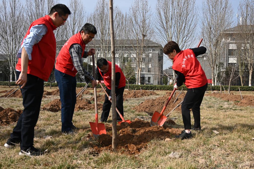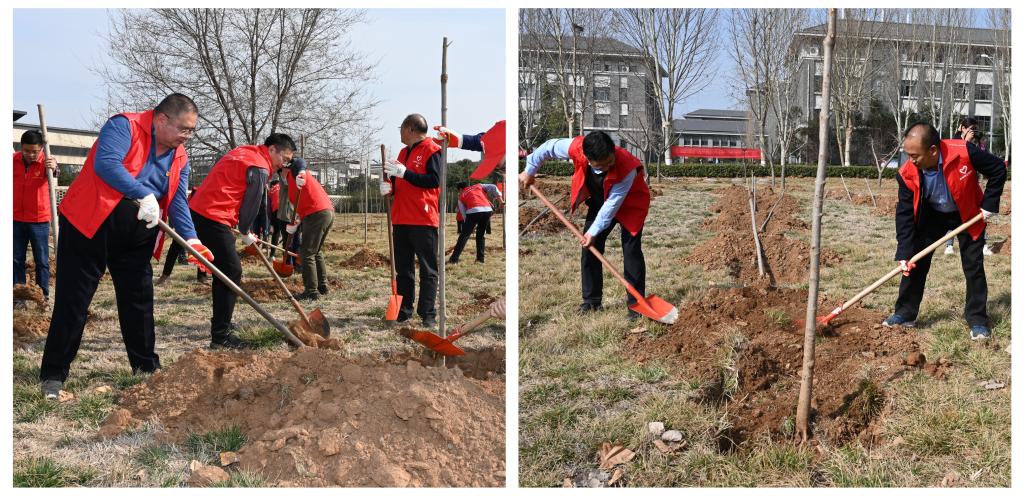 植树活动现场气氛热烈。大家二三人一组,分工协作,配合默契,挥锹铲土、扶树压土、培土围堰,道道工序规范严格,认真细致地栽种每一棵树苗。一株株红花槐、七叶树在和煦的春风中错落分布、昂然挺立,展现勃勃生机,为我校增添浓浓春意。大家纷纷表示,活动不仅为春光明媚的校园增添盎然的绿意,同时也增强了基层党组织建设的凝聚力与向心力,为创建文明校园增添了一张靓丽的名片。