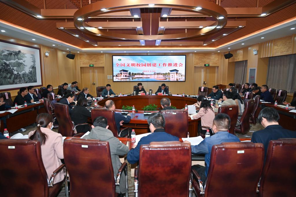 3月14日下午,我校在成均楼B301会议室召开全国文明校园创建推进会,校党委书记郭改英,党委副书记宋文献,校精神文明建设成员单位及二级学院负责人参加会议。