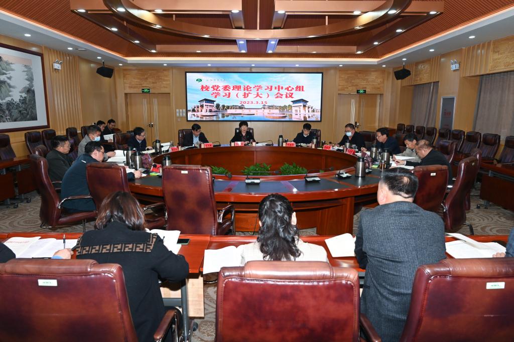 3月15日上午,校党委理论学习中心组在成均楼B301会议室举行集体学习会,集中学习习近平总书记在学习贯彻党的二十大精神研讨班开班式以及第十四届全国人民代表大会第一次会议上的重要讲话精神等内容,研究部署学校学习宣传贯彻工作。校党委理论学习中心组全体成员,有关职能部门、学院负责人参加学习。校党委书记郭改英主持学习会。