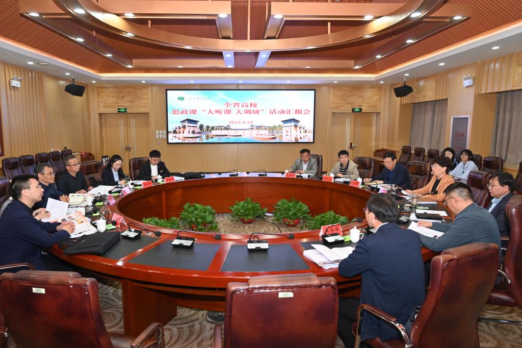 4月12日,省教育厅“大听课 大调研”活动第三调研组组长、信阳农林学院党委副书记王庆兵等一行六人莅临我校调研指导思政课建设工作。座谈会在成均楼B301会议室举行,校党委书记郭改英,党委副书记宋文献,副校长赵海彦出席。