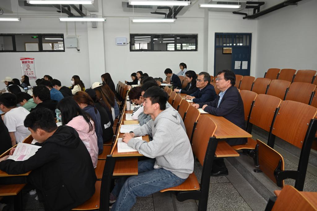 会前,调研组一行实地察看了马克思主义学院楼宇文化、思政课各教研室、地方党史纪念馆等,通过师生访谈、查看思政课相关资料等方式,充分了解了我校思政课建设情况。调研组一行还随机听取了我校思政课教师孙红永讲授的《中国近现代史纲要》和李宁讲授的《毛泽东思想和中国特色社会主义理论体系概论》课程。