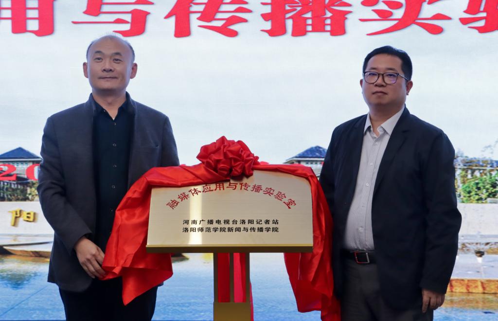 近日,河南广播电视台洛阳记者站与我校新闻与传播学院共同建设的融媒体应用与传播实验室揭牌仪式在学校A9-110播控中心举行。河南广播电视台洛阳记者站站长李鑫、河南新激流教育研究院院长张桂芳、校党委宣传部负责人、新闻与传播学院师生代表及业界相关代表参加揭牌仪式。仪式由新闻与传播学院院长李正学主持。