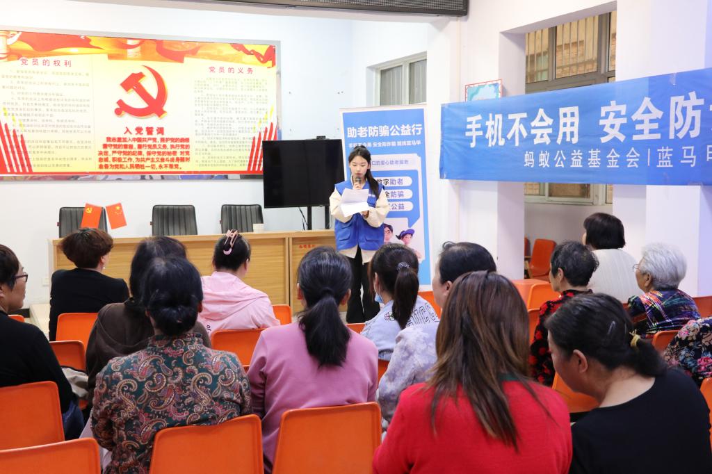“有问题,找蓝马甲!”在洛阳市洛龙区白碛社区,志愿者铿锵有力的话语获得了群众的阵阵掌声。这是我校4月18日开展的“蓝马甲行动进社区”活动中的一幕。该活动由蚂蚁集团公益基金会、河南省青少年发展基金会联合发起,我校承办,通过提供数字助老、防骗知识普及、金融安全知识讲座等社区公益志愿服务活动,为老年人解决手机不会用、不敢用的问题,提高老年人的识骗、防骗能力,搭建起一个“人服务人”的志愿者平台。