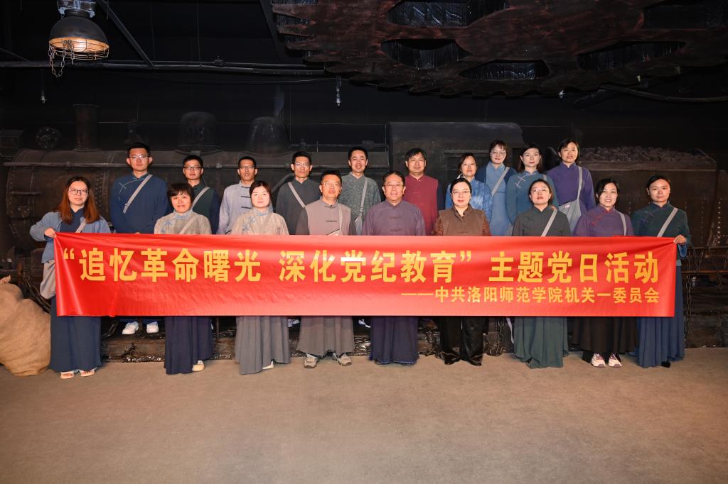 为深入推进党纪学习教育,引导全体党员干部不断强化纪律意识,5月10日上午,机关一党委、化学化工学院党委近30名党员教工赴洛阳红色沉浸式剧场开展“追忆革命曙光 深化党纪教育”主题党日活动,沉浸式参演观看了红色戏剧《曙光》,接受了一次生动深刻的党纪教育。