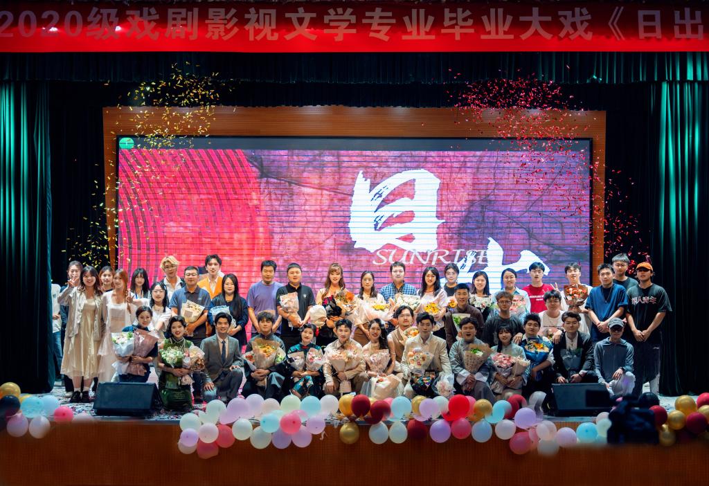 近日,文学院2020级戏剧影视文学专业毕业大戏《日出》在蓓蕾剧场精彩上演。学校相关职能部门负责人、文学院党政领导班子成员,以及戏剧影视文学专业全体师生观看了演出。